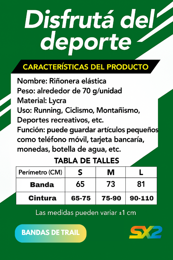 Medidas de cada talle en las fotos. Tené en cuenta que entre nuestra banda para running y la faja para trail, las medidas y talles recomendados difieren levemente puesto que la faja al estar preparada para llevar los bastones de trecking cede menos.